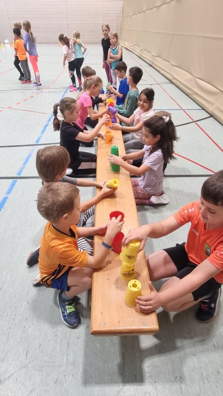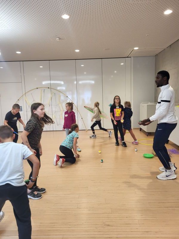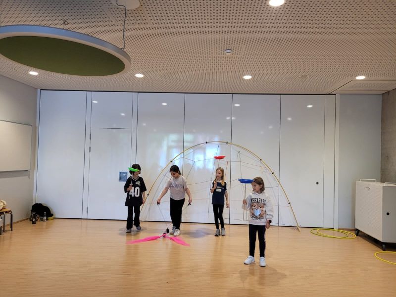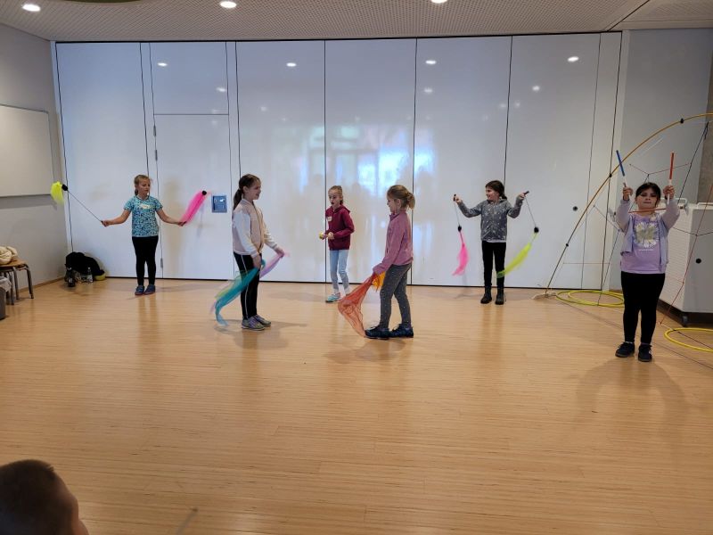 - Beim Bewegungstag zum Thema Zirkus verwandelte sich die Aula in eine Manege. Nach einem gemeinsamen Start mit Spielen und Übungen konnten die Kinder frei aus verschiedenen Zirkusstationen wählen. Mit viel Spaß und Bewegung entstand sogar die Idee für einen Auftritt bei der nächsten Monatsfeier.