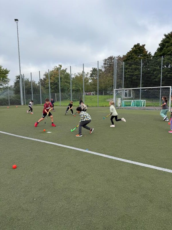 - Beim Bewegungstag schnupperten 15 Kinder in die Sportart Feldhockey hinein. Mit viel Begeisterung und Motivation machten sie schnell Fortschritte, führten die Übungen erfolgreich durch und konnten ihr erlerntes Wissen anschließend in mehreren 3-gegen-3-Spielen anwenden und üben.