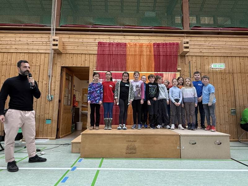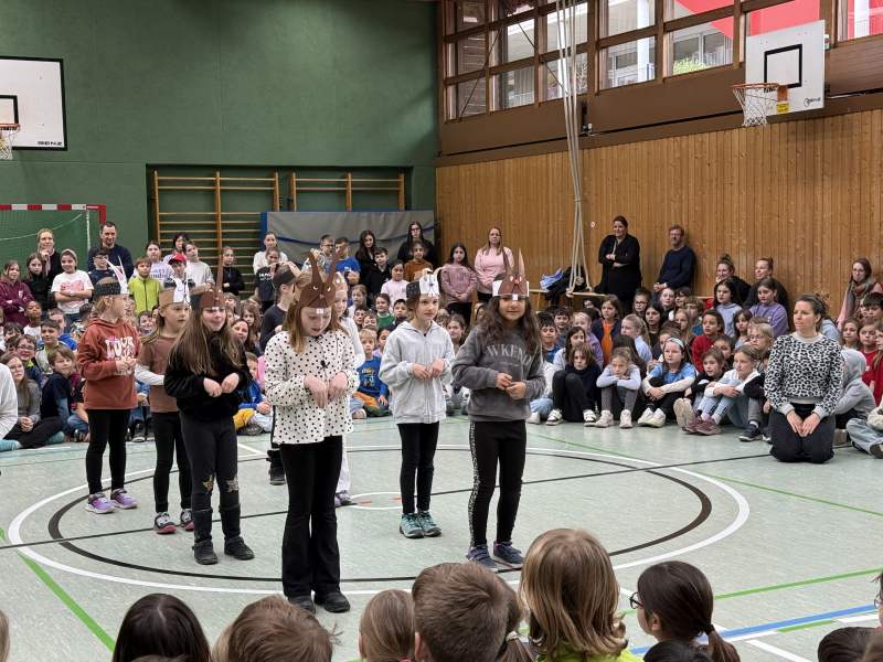 Bei unserer letzten Monatsfeier wurde es richtig frühlingshaft und musikalisch bunt: Der Chor und die Klasse 3a begeisterten mit „Frühlingserwachen – Tiritomba“. Die Klasse 2a sorgte mit ihrem fröhlichen Hasentanz für gute Stimmung. Die Klasse 4a präsentierte ein gelungenes Minimusical und auch die Bläserklasse 17 überzeugte mit ihren musikalischen Beiträgen. Ein rundum abwechslungsreiches Programm, das mit viel Applaus belohnt wurde!