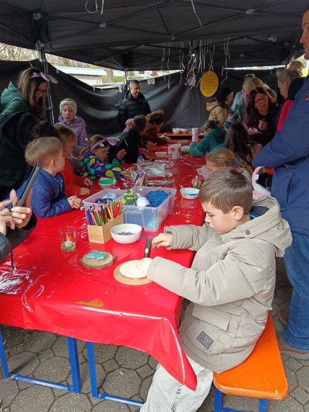 Der Stand war durchgehend sehr gut besucht und die Kinder hatten große Freude daran, ihre eigenen kleinen Kunstwerke zu gestalten.