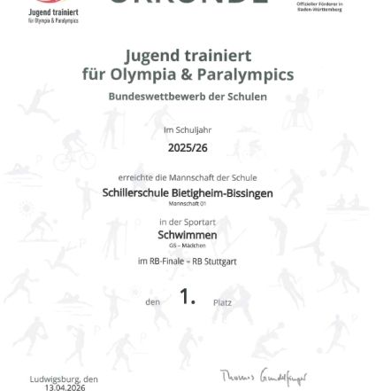 1. Platz bei Jugend trainiert für Olympia (Schwimmen)
